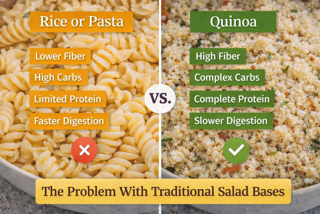This underrated superfood is rich in protein, fiber, and essential nutrients, making it more filling and nutritionally powerful than traditional salad bases like rice or pasta.